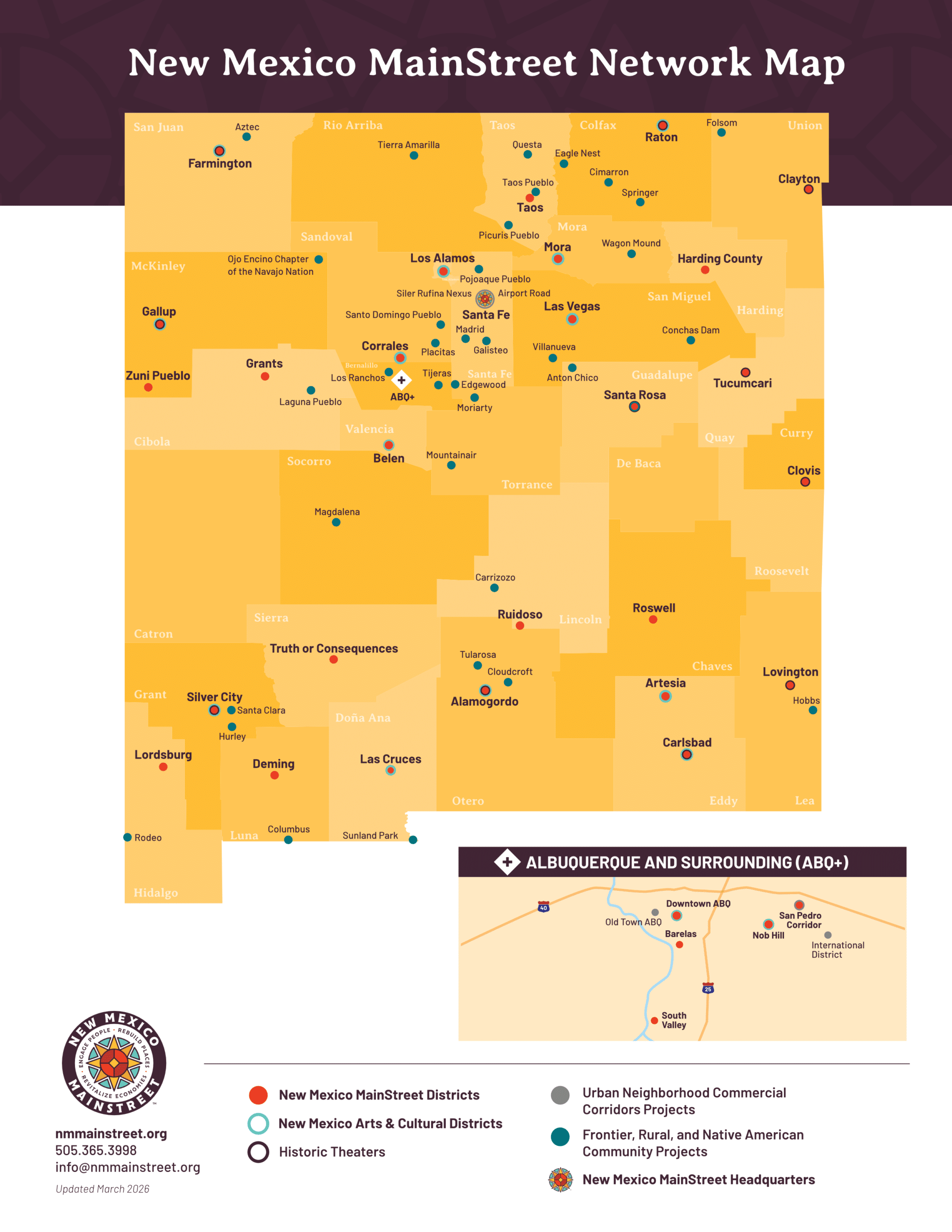As a Main Street America™ Coordinating Program, New Mexico MainStreet helps to lead a powerful, grassroots network consisting of over 40 Coordinating Programs and over 1,200 neighborhoods and communities across the country committed to creating high-quality places and to building stronger communities through preservation-based economic development.