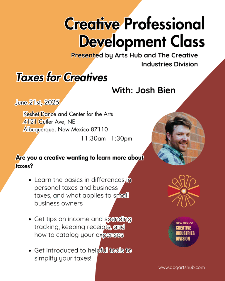 The Creative Entrepreneur Exhibition and Symposium will expand the initial creative entrepreneur business development opportunities that Taos County facilitated as part of the inaugural Creative Industries Division (CID) Grant program in FY24; while also weaving together EDD-supported efforts to establish a Business Retention & Expansion (BRE) program. As the BRE program is launched, the county will continue to engage 59 individuals who participated in the CID-funded Artist Inc Express workshops to provide practice opportunities for the skills learned and offer exhibition and sales opportunities at the Taos Center for the Arts Stables Gallery between May 9-18, 2025. Additionally, free training and workshops will be provided by Taos SBDC on business formation, business structures, and navigating the NM GRT system, as well as tax workshops from Rio Grande CPA to creatives who have not previously engaged with the program.