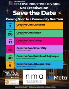 Registration is open for the five regional events and will open soon for the statewide convening at edd.newmexico.gov/creativecon.