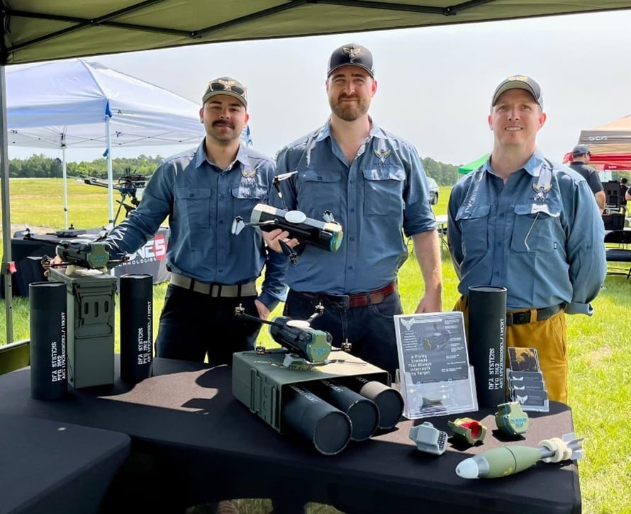 DFA Systems produces highly modular, compact, low-cost attritable robotic systems for military use. Their flagship product, the Precision Flying Grenade (PFG), is a quadcopter-format group 1 attack drone.